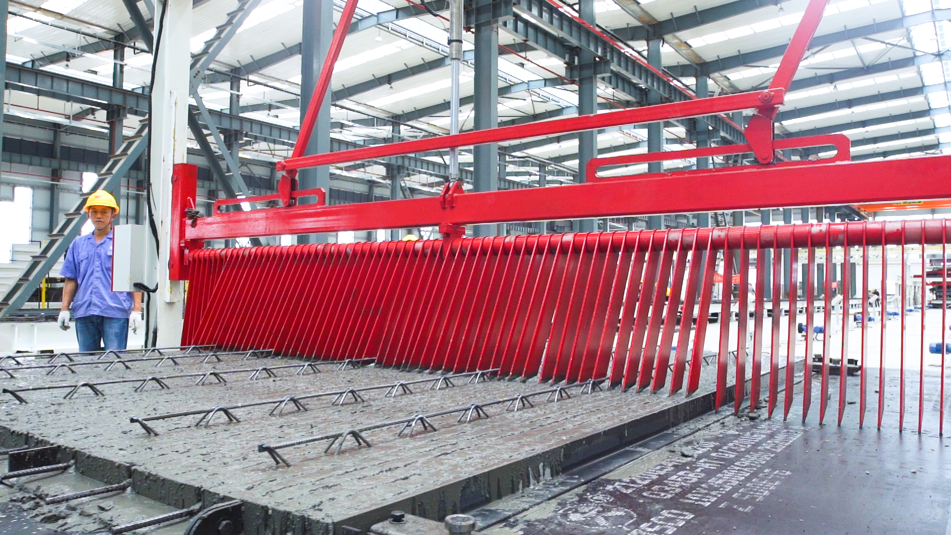 5.布料:用混凝土輸送系統(tǒng)將混凝土輸送至布料機(jī),在模具上涂刷脫模劑,用布料機(jī)進(jìn)行布料。